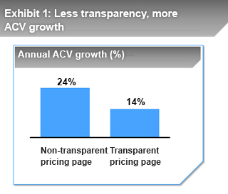 4. Consider ditching your pricing page – while counter-intuitive, it’s not always good to be transparent with pricing. Not having full pricing transparency allows you to have more flexibility in determining prices and matching price to the perceived value each customer has. In fact, a McKinsey study for SaaS companies revealed that companies with less pricing transparency tend to grow faster: